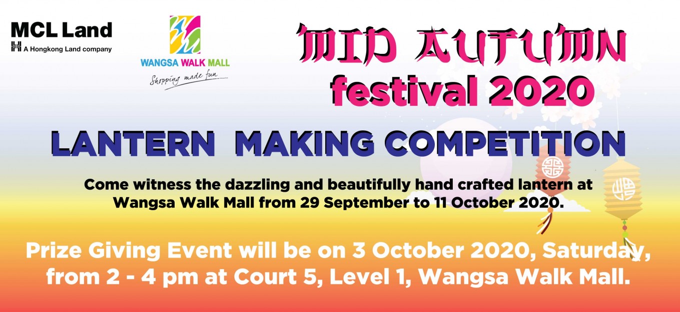 Terms & Conditions: 1. By participating in the contest, each participant should fully and unconditionally agree to be bound by these Terms and Conditions herein and the decision(s) of Wangsa Walk Mall management which shall be final and binding at all times. 2. The prize shall be non-transferable and is not exchangeable or otherwise in part or in full. The winner must abide by the terms and conditions imposed by the party (ies) arranging and/or providing for the prize. 3. Wangsa Walk Mall management reserves the right to use the name, address, photograph, particulars and/or documents of all winners for the purpose of advertising and all other forms of publicity from time to time. 4. Wangsa Walk Mall management may at its sole and absolute discretion amend the terms and conditions set herein without prior notice. 5. Wangsa Walk Mall management will not be held responsible for any costs, losses or injuries incurred as a result of participating in this competition. 6. Participant(s) is open for 50 students from primary and secondary school ONLY. 7. Number of students in group = 1- 3 students. 8. All lanterns must use recycled products only. 9. Judges’ decision is final. 10. Size of lantern must not exceed 2’x 2’. 11. All lanterns must be submitted on 22nd September 2020 to 24th September 2020 from 9am to 5pm at Wangsa Walk Mall Management Office, Ground Floor. 12. Judging will be held at court 5 at 1st floor Wangsa Walk Mall, on 03 October 2020 followed by prize giving. 13. All entries will receive a hamper and certificate each. For any inquiries please contact 018-6676049(Yan) / 014-2226989(Syai)